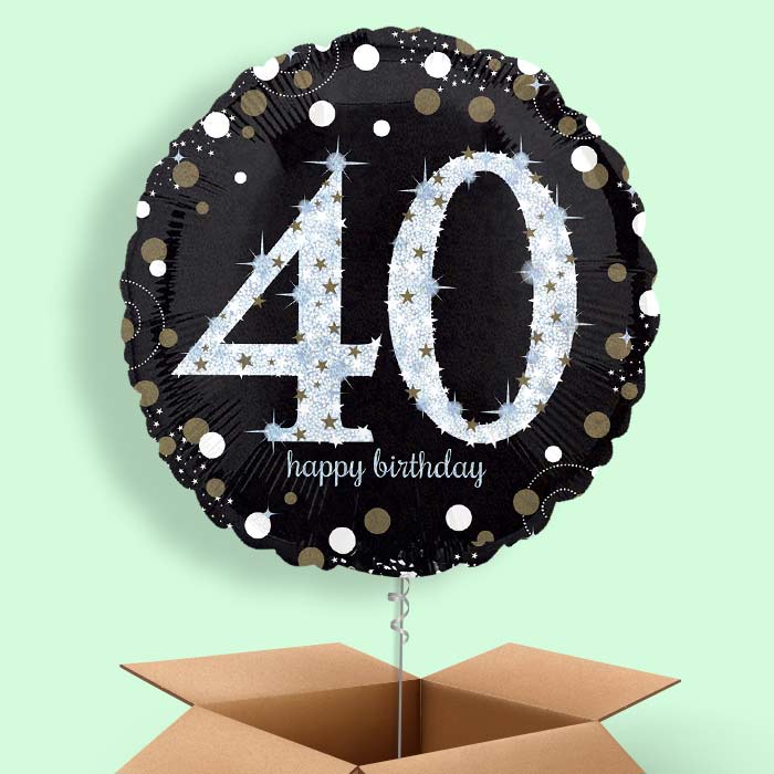 Black & Gold 40th Birthday Helium Balloon in a Box