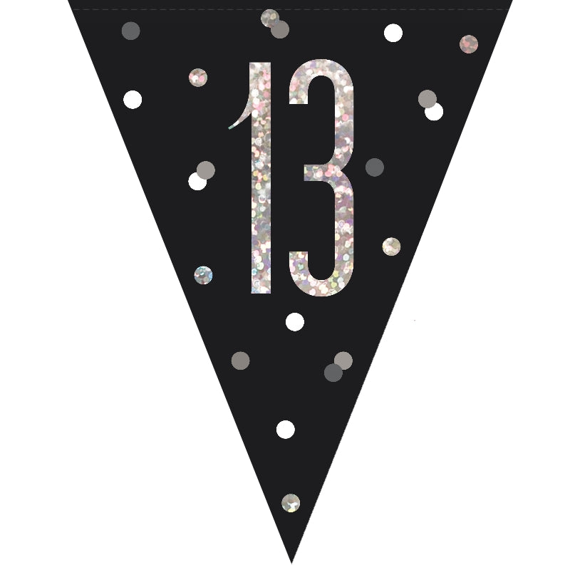 Black & Silver 13 Birthday Bunting – Teenager Party Decor
