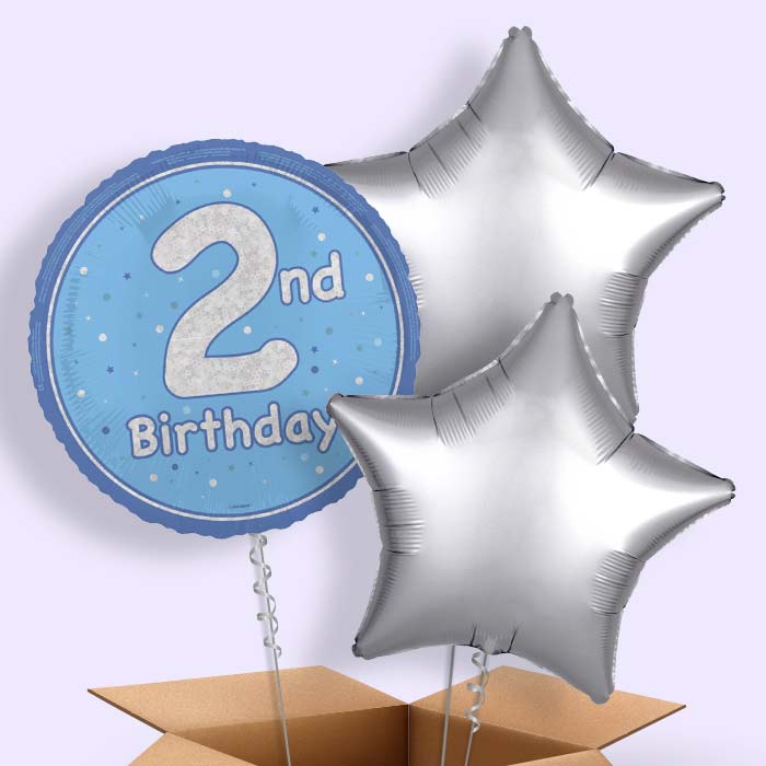 Our Blue and Silver 2nd Birthday Foil Balloon in a Box is a great gift makes a great birthday surprise! They also make a great table decoration too!