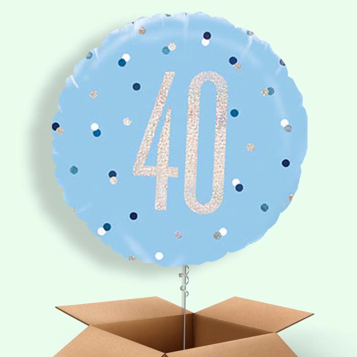 Blue and Silver Holographic 40th Birthday Balloon in a Box