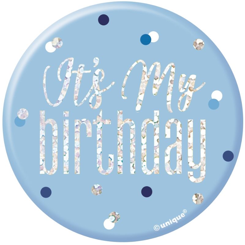 Blue and Silver Holographic It’s My Birthday Badge 7cm