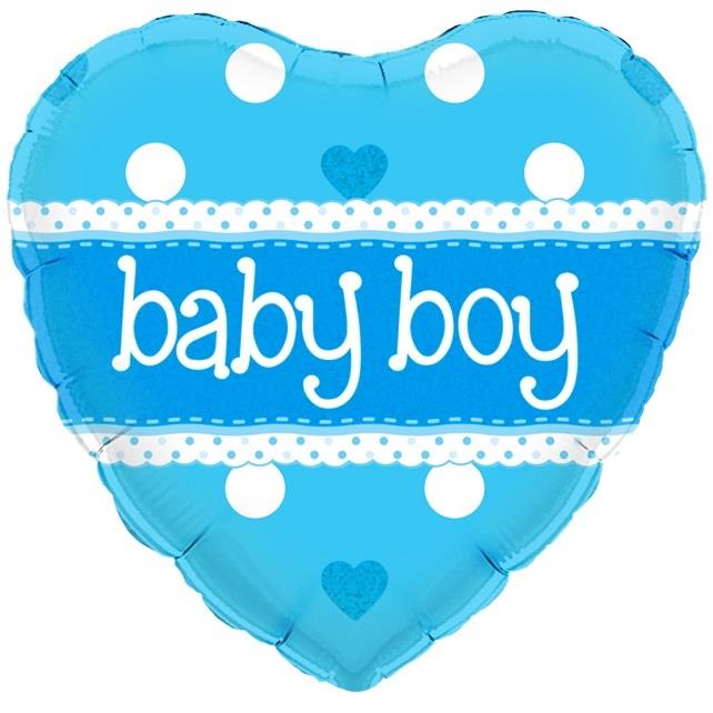 The balloon features a blue coloured heart with "Baby Boy" print.