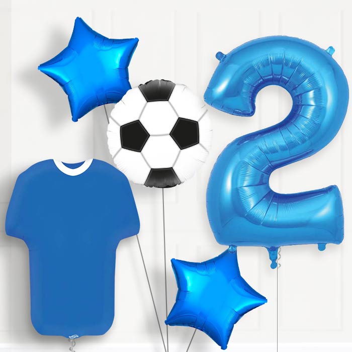 A great Blue Football Shirt 2nd Birthday Balloon Package.