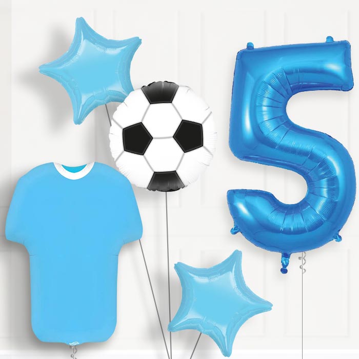 A great Blue Football Shirt 5th Birthday Balloon Package.