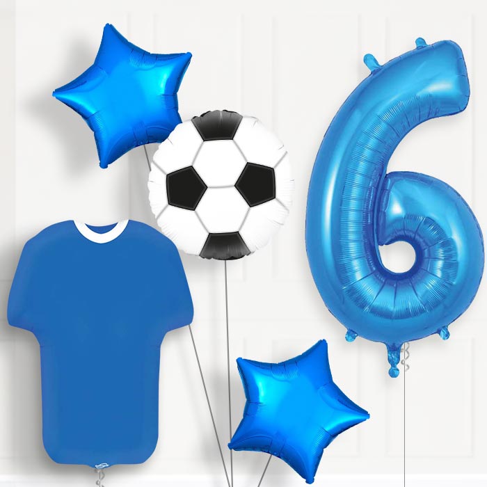 A great Blue Football Shirt 6th Birthday Balloon Package.