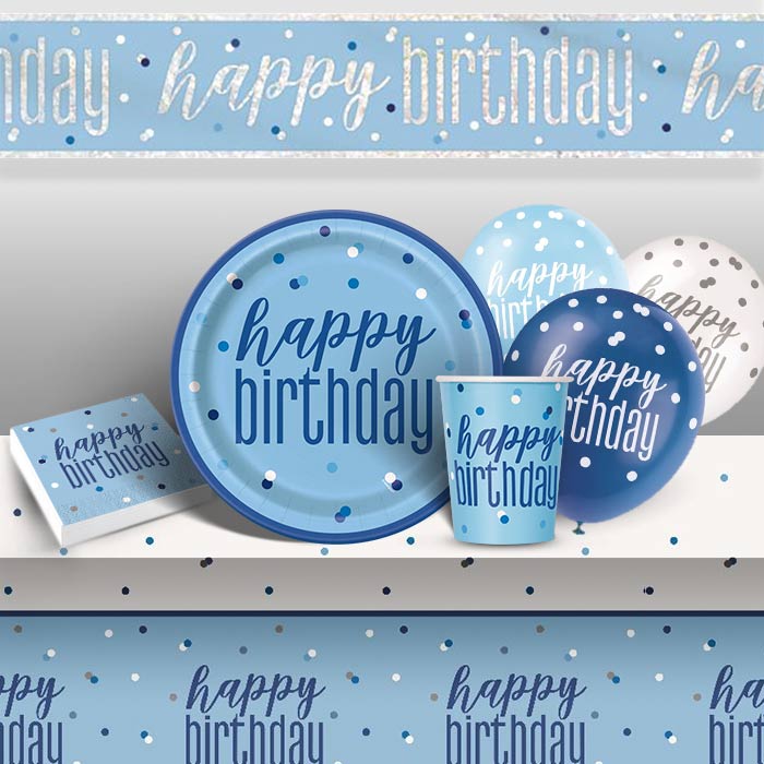 Blue Glitz Birthday Party Packs: Tableware & Decoration Kit