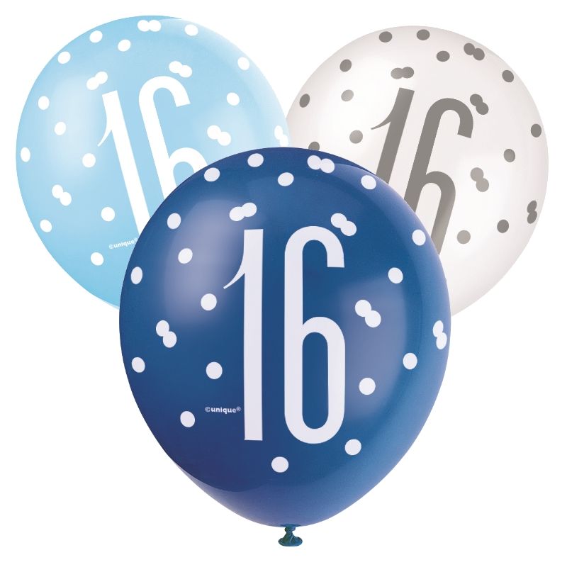 Blue & Silver 16th Birthday Latex Balloons Pack of 6