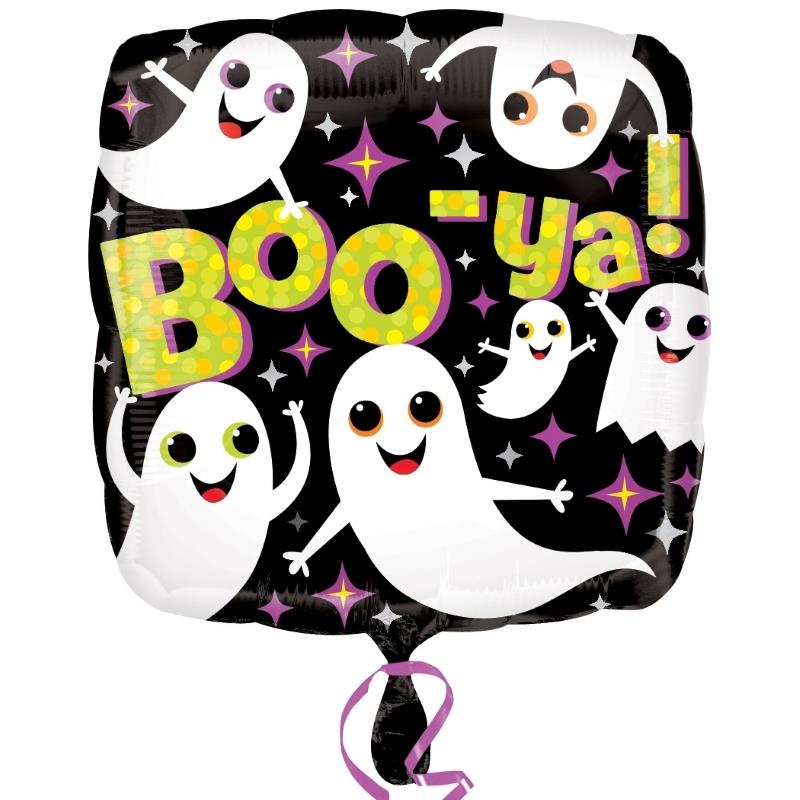 Boo-Ya Halloween Foil Helium Balloon Party Decoration. Inspire your Party with Boo-Ya Halloween Decorations! More matching Boo-Ya Halloween Themed Party items are available in our shop.