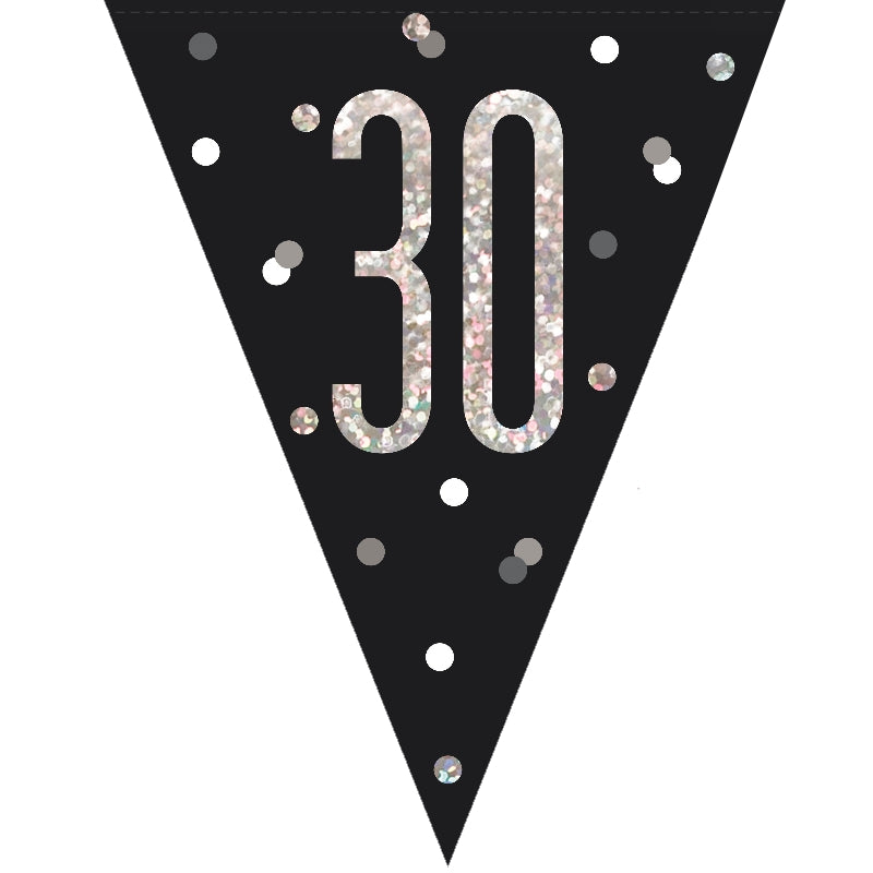 30th Birthday Bunting Black and Silver 2.7 Metres