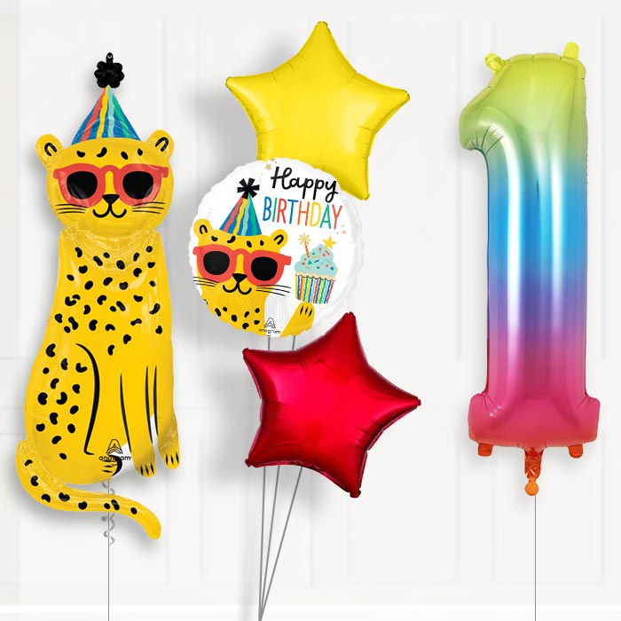 Our Cheetah Helium Balloon Package 1st Birthday will ensure you have all the balloons you need for a special 1st Birthday surprise!