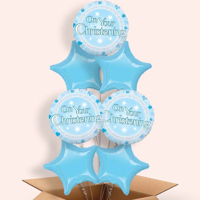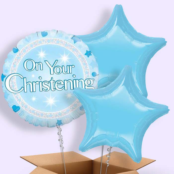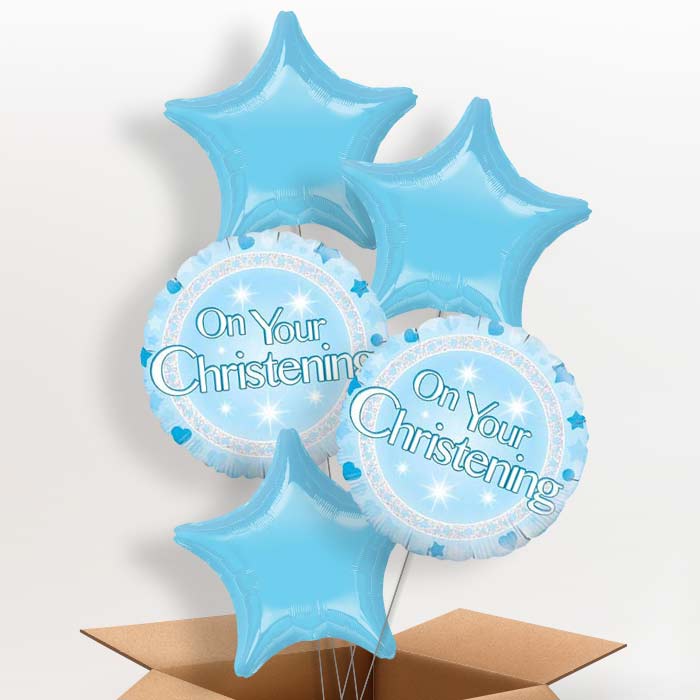 Perfect to send a special boy a Christening wish our Blue On Your Christening Balloons, make a great gift, table centrepiece and party decoration.