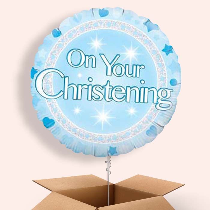 Blue On Your Christening Foil Helium Balloon in a Box Gift.