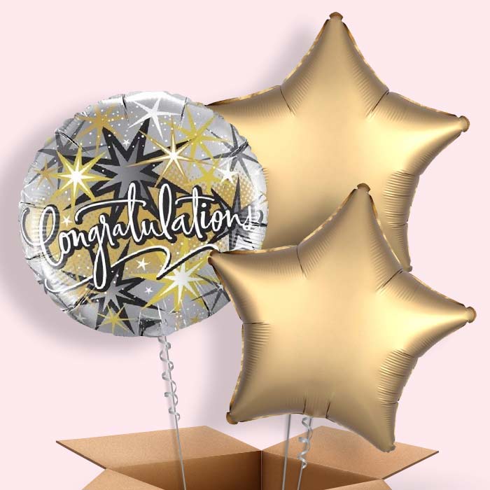 Silver and Gold Stars Congratulations Themed Foil Helium Balloon in a Box Gift.