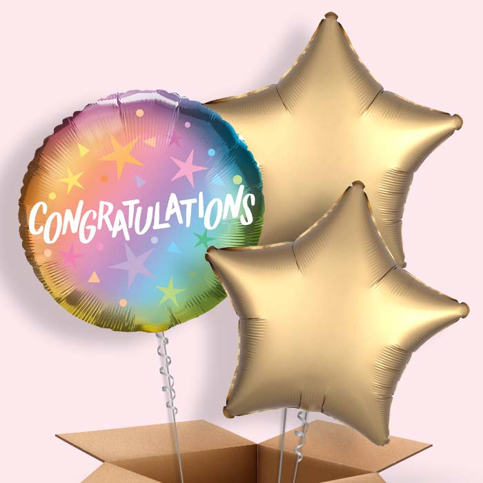 Congratulations Ombre Stars Foil Helium Balloon in a Box Gift.