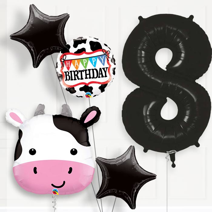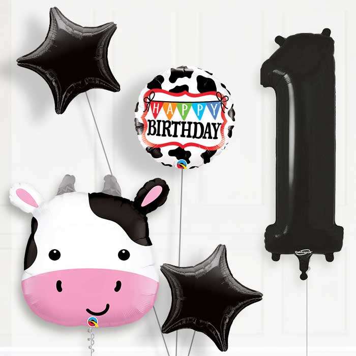 Our Cow Birthday Balloon Package will ensure you have all the balloons you need for a special Birthday surprise!