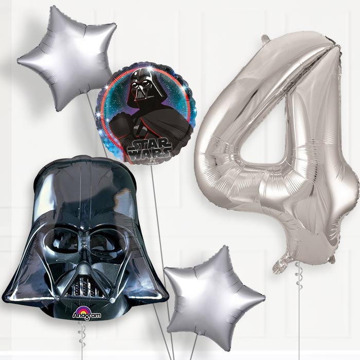 Our Darth Vader Helium Balloon Package 4th Birthday will ensure you have all the balloons you need for a special 4th Birthday surprise!