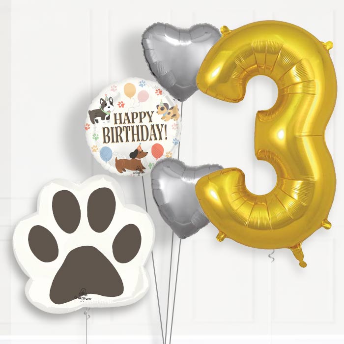 Our Dog Helium Balloon Package 3rd Birthday will ensure you have all the balloons you need for a special 3rd Birthday surprise!