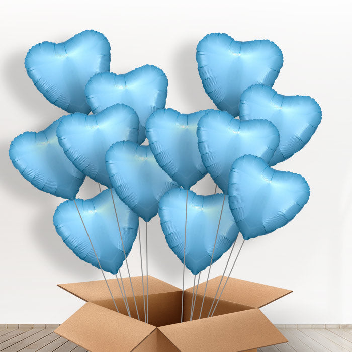 Dozen Baby Blue Heart Balloons Delivered Inflated.