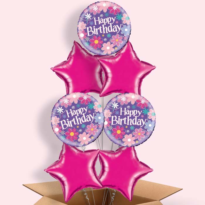 Send a floral birthday wish with Flowers Happy Birthday Balloons, they make a great gift, table centrepiece and party decoration.