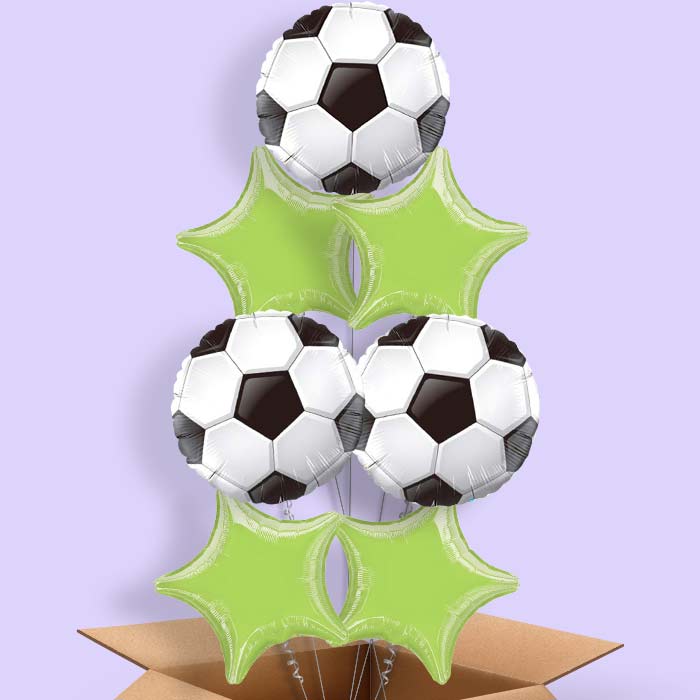 Our balloon in a box can have personalised text added to it and the balloons feature a classic football print. It makes a great birthday surprise and the perfect ready to use balloon display for your party - ready to go out of the box and your guests are sure to love it!