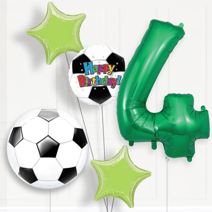 Our Football Helium Balloon Package 4th Birthday will ensure you have all the balloons you need for a special 4th Birthday surprise!