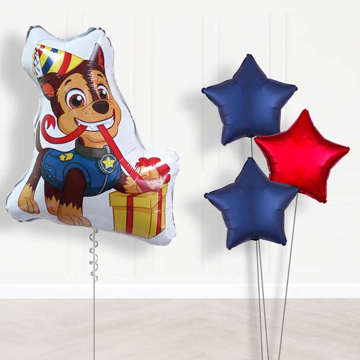 Our balloon bouquet can have personalised text added to it and the main balloon features a giant Chase design.