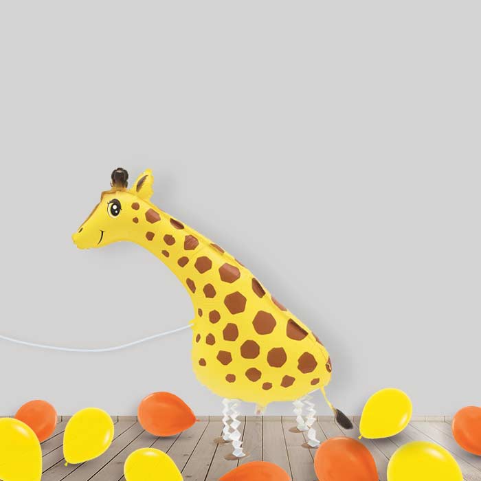Our balloon bouquet can have personalised text added to it and the main walking balloon features a Giraffe design.