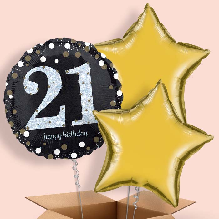 Combine Golds, Blacks and Silvers for a special birthday wish with our Gold Sparkle 21sy Birthday Balloons, they make a great gift, table centrepiece and party decoration.