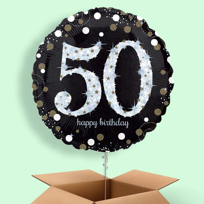 Gold Sparkle Happy 50th Birthday Themed Foil Helium Balloon in a Box Gift.