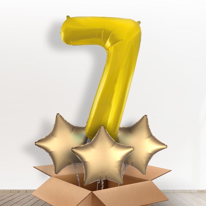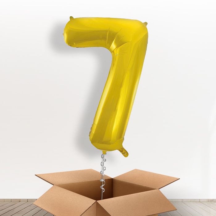 Gold Giant Number 7 Helium Balloon in a Box Gift