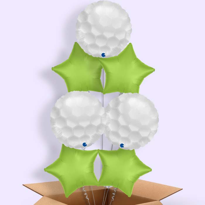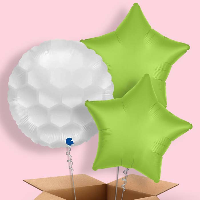 Our balloon in a box can have personalised text added to it and the balloons feature a golf ball design print. It makes a great surprise and the perfect ready to use balloon display for your party - ready to go out of the box and your guests are sure to love it!