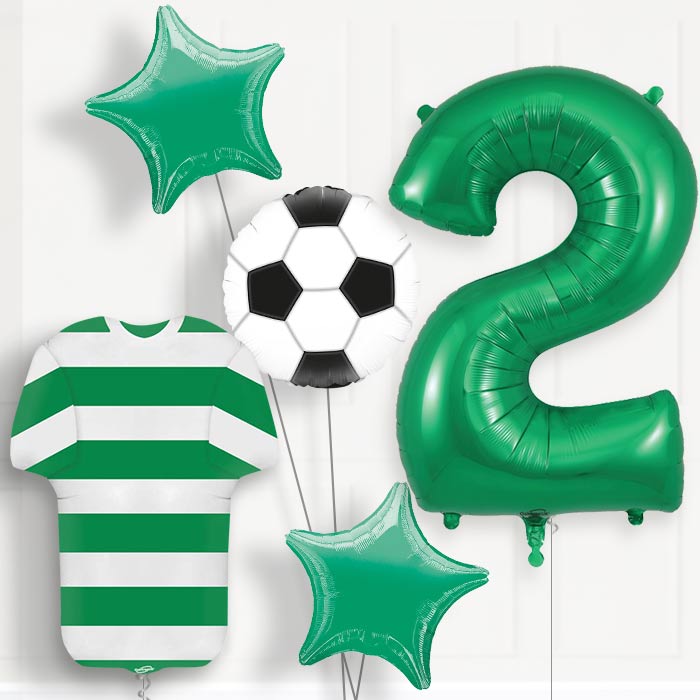 A great Green and White Hoop Football Shirt 2nd Birthday Balloon Package.