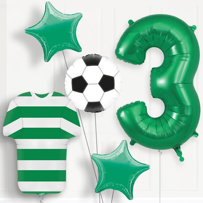 A great Green and White Hoop Football Shirt 3rd Birthday Balloon Package.