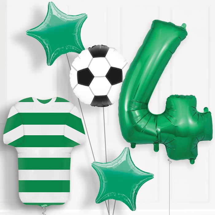 A great Green and White Hoop Football Shirt 4th Birthday Balloon Package.