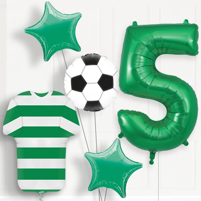 A great Green and White Hoop Football Shirt 5th Birthday Balloon Package.
