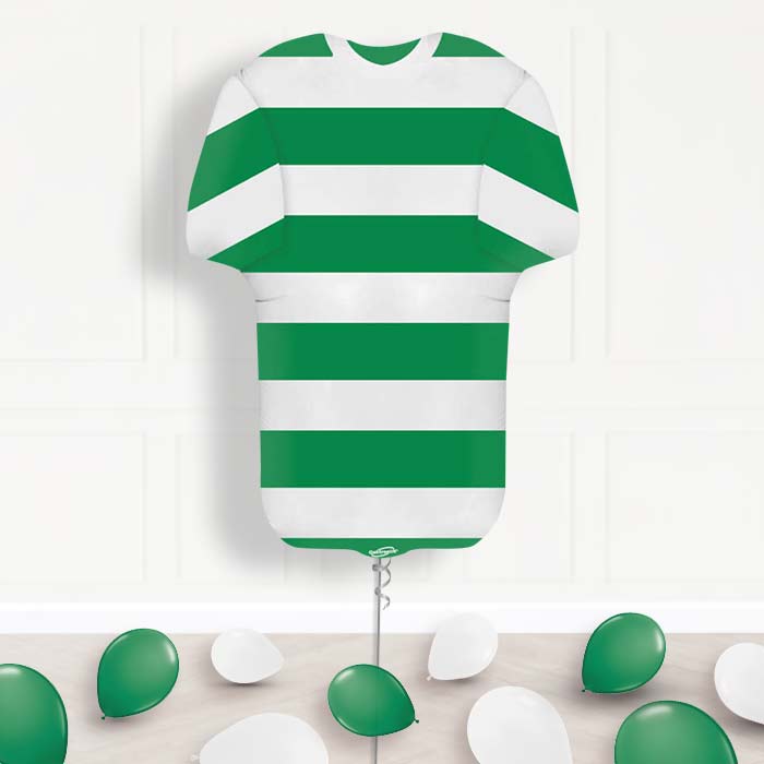 Our Green and White Hoop Football Shirt Helium Balloon Display will ensure you have all the balloons you need for a special surprise!