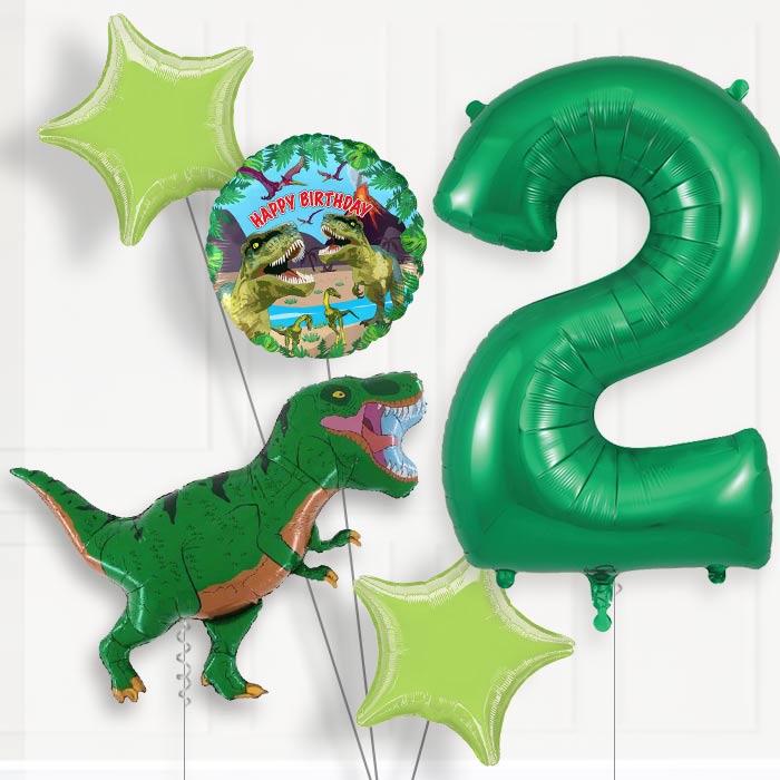 Our Green T Rex Helium Balloon Package 2nd Birthday will ensure you have all the balloons you need for a special 2nd Birthday surprise!