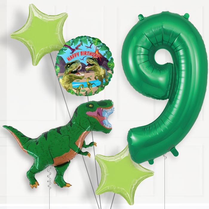 Our Green T Rex Helium Balloon Package 9th Birthday will ensure you have all the balloons you need for a special 9th Birthday surprise!