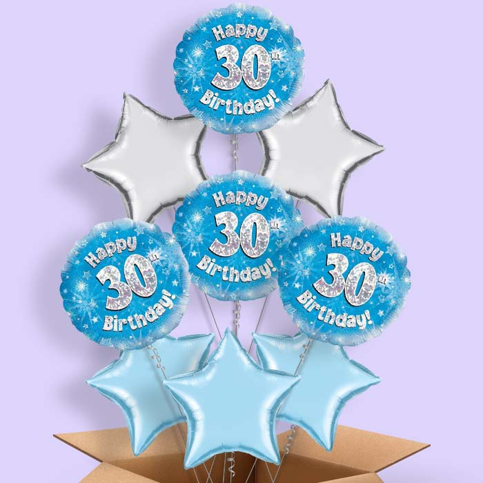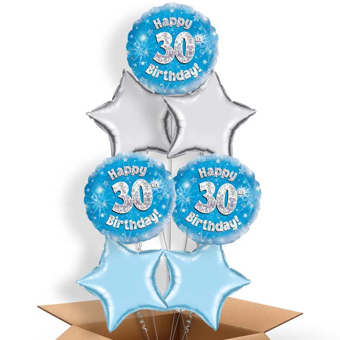 Happy 30th Birthday Blue Stars Helium Balloon in a Box