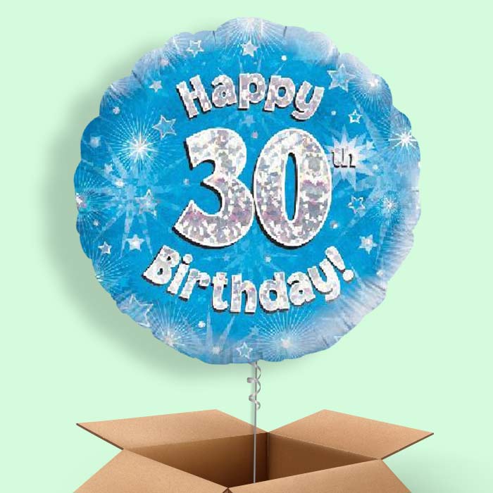 Happy 30th Birthday Blue Stars Foil Helium Balloon in a Box Gift.