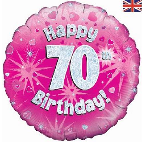 Happy 70th Birthday Pink Hearts Foil Helium Balloon Party Decoration. Inspire your Party with Happy 70th Birthday Pink Hearts Decorations! More matching Pink Heart Themed Party items are available in our shop.