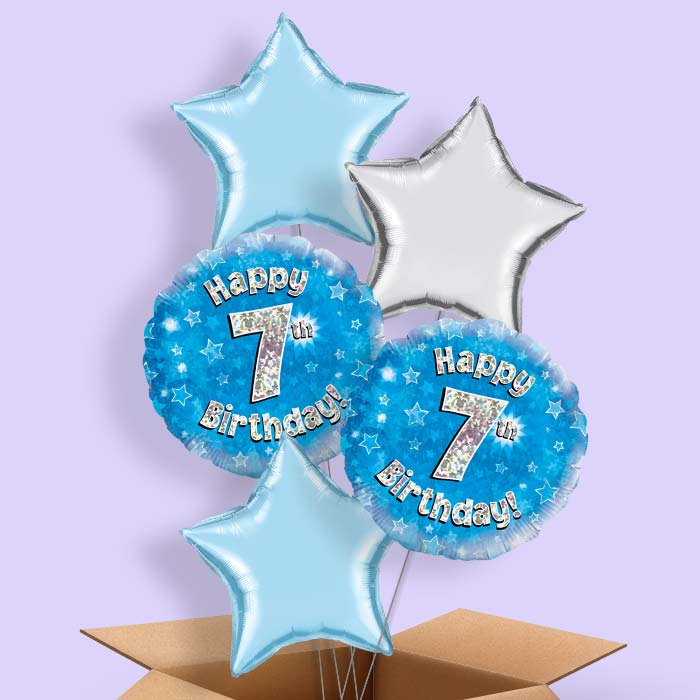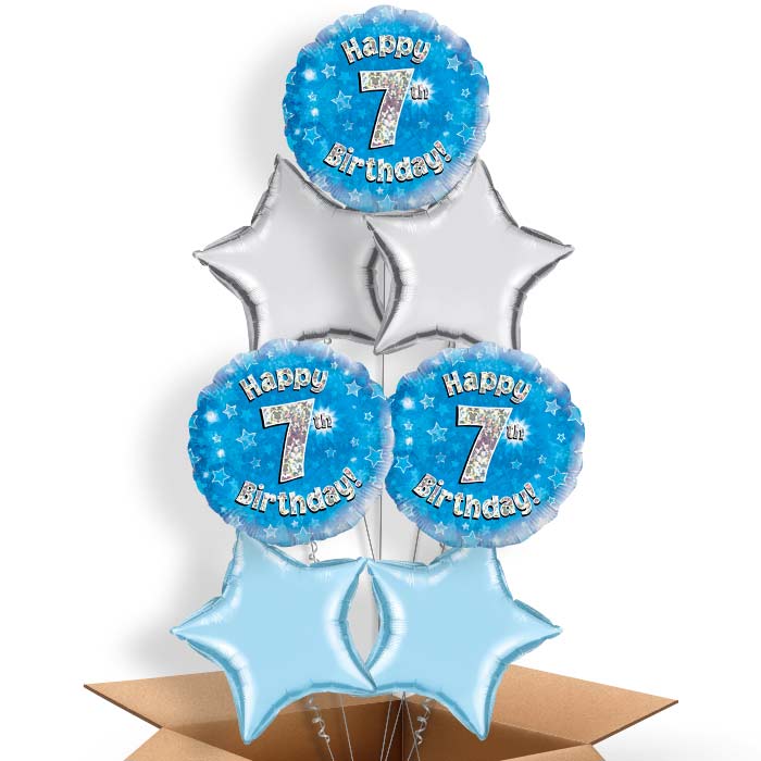 Happy 7th Birthday Blue Stars Foil Helium Balloon in a Box Gift.