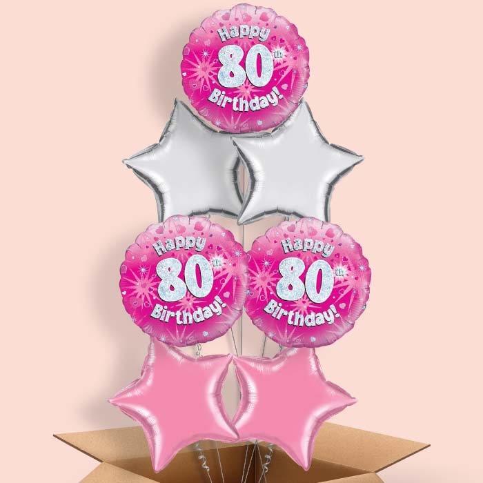 Happy 80th Birthday Pink Hearts Balloon in a Box