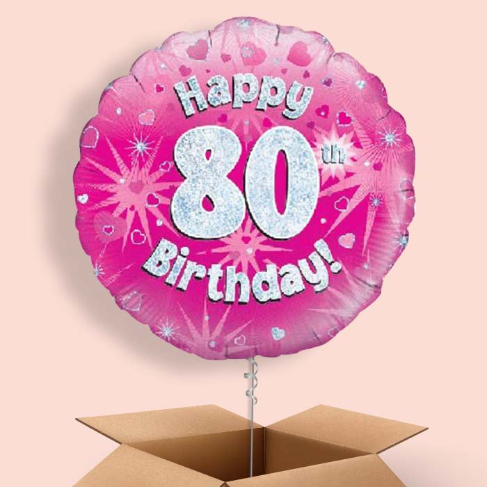 Happy 80th Birthday Pink Hearts Foil Helium Balloon in a Box Gift.