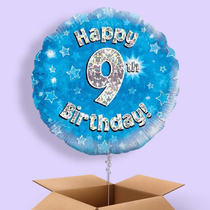 Happy 9th Birthday Blue Stars Foil Helium Balloon in a Box Gift.