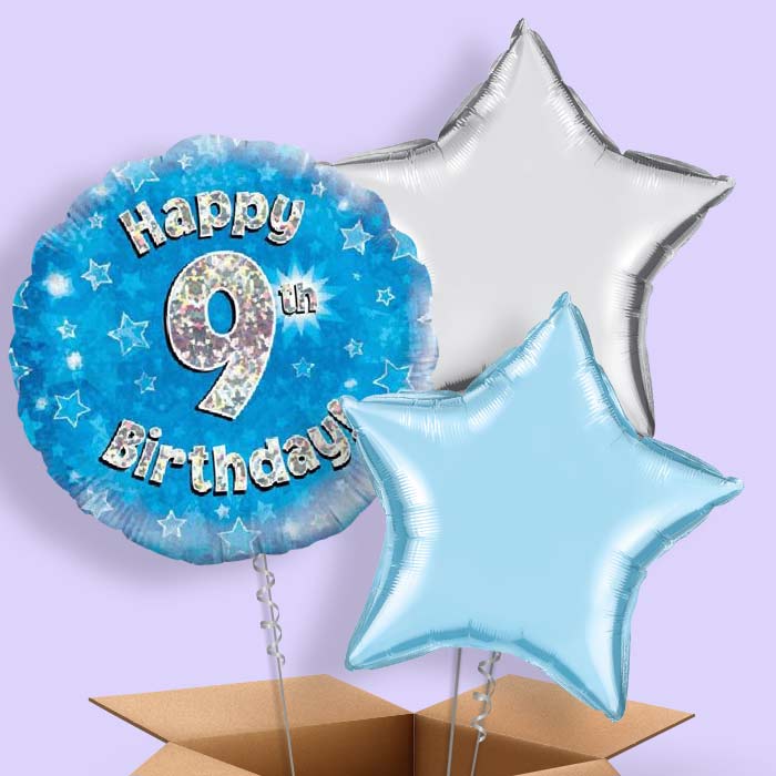 Happy 9th Birthday Blue Stars Helium Balloon in a Box