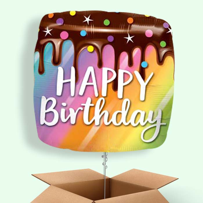 Happy Birthday Rainbow Cake Foil Helium Balloon in a Box Gift.