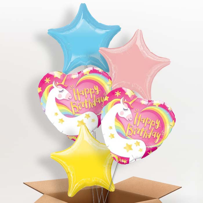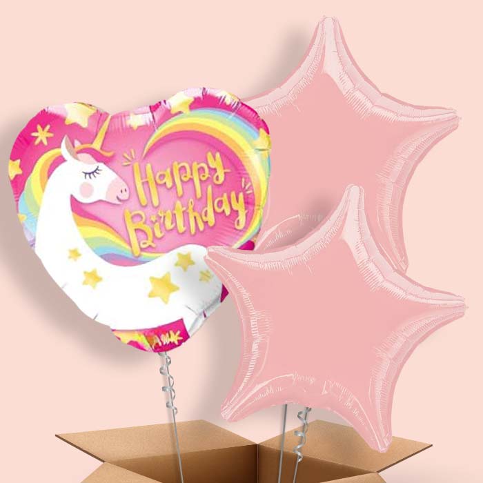 Our Happy Birthday Unicorn Helium Balloons in a Box is a great gift for a Unicorn fan, especially as a birthday surprise! They also make a great Unicorn table decoration too!