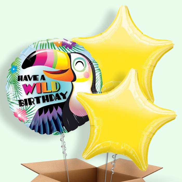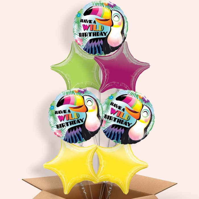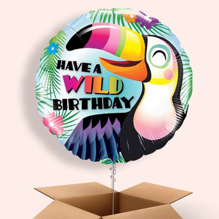 A Have a Wild Birthday Toucan Balloons in a Box surprise featuring a colourful Toucan design.