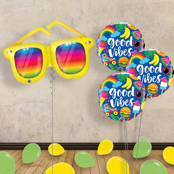 Send a thoughtful and personal balloon gift with a Rainbow Striped Sunglasses Balloon, they make a great gift, table centrepiece and party decoration.